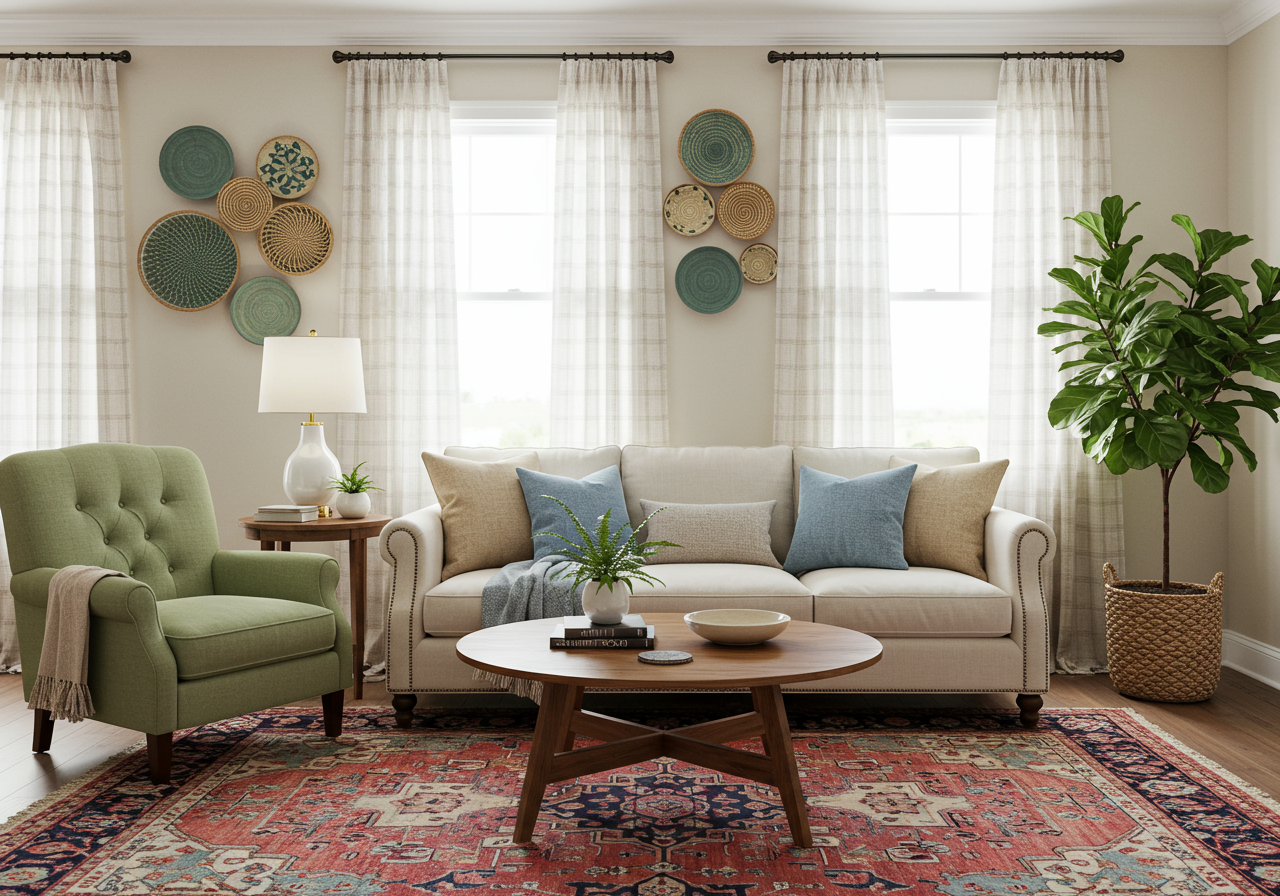 Decor detailing can play a huge role in transforming your home this way. Think vintage-inspired lampshades, accent pillows, antique paintings, and bathroom/bedroom wallpaper.